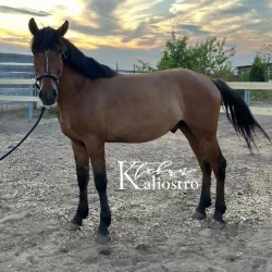 Кобыла.Породы Райд пони.Бурой масти.148 см в холке. 2011 года рождения.Отец Хип Хоп.Уравновешенная, покладистая, безопасная, проста в обиходе, ничего не боится.Под седлом не играется, при этом активная…