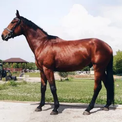 Очень изящная, высокая и красивая кобыла. Привезена в Россию в 2023 году и на сегодняшний день выступает в соревнованиях по конкуру с высотой до 140 см. Династия очень аккуратная и смелая лошадь с прекрасной…