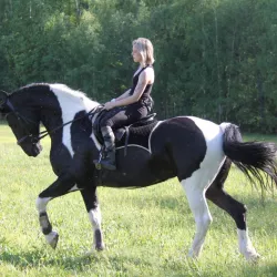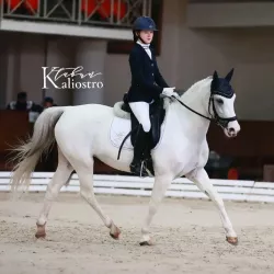 Очень изящная, высокая и красивая кобыла. Привезена в Россию в 2023 году и на сегодняшний день выступает в соревнованиях по конкуру с высотой до 140 см. Династия очень аккуратная и смелая лошадь с прекрасной…