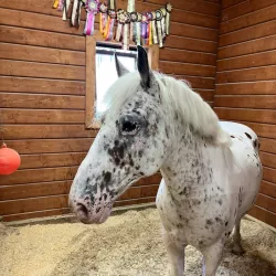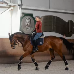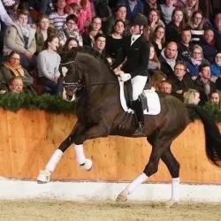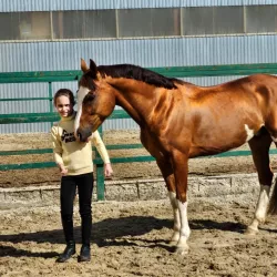 Очень изящная, высокая и красивая кобыла. Привезена в Россию в 2023 году и на сегодняшний день выступает в соревнованиях по конкуру с высотой до 140 см. Династия очень аккуратная и смелая лошадь с прекрасной…