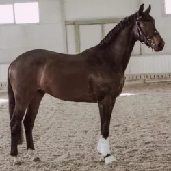 Очень изящная, высокая и красивая кобыла. Привезена в Россию в 2023 году и на сегодняшний день выступает в соревнованиях по конкуру с высотой до 140 см. Династия очень аккуратная и смелая лошадь с прекрасной…