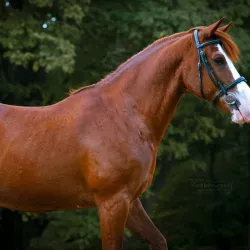Очень изящная, высокая и красивая кобыла. Привезена в Россию в 2023 году и на сегодняшний день выступает в соревнованиях по конкуру с высотой до 140 см. Династия очень аккуратная и смелая лошадь с прекрасной…