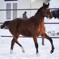 Тракененский жеребец Дивьер. Рост в холке: 160 см (ожидаемый рост 164 165 см) Заезжен весной 2025 г. Проходит базовую подготовку под седлом. В шпрингартене напрыган до 140 см. Работается согласно возрасту,…