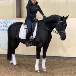 Очень изящная, высокая и красивая кобыла. Привезена в Россию в 2023 году и на сегодняшний день выступает в соревнованиях по конкуру с высотой до 140 см. Династия очень аккуратная и смелая лошадь с прекрасной…