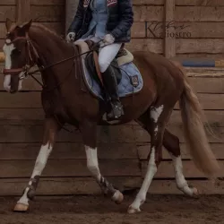Очень изящная, высокая и красивая кобыла. Привезена в Россию в 2023 году и на сегодняшний день выступает в соревнованиях по конкуру с высотой до 140 см. Династия очень аккуратная и смелая лошадь с прекрасной…