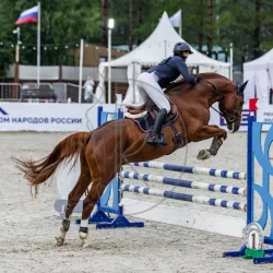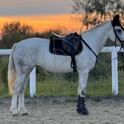 Шикарная кобыла с правильным экстерьером, лебединая шея, маленькая очень красивая голова,ровные ноги, густой хвост. Демонстрирует красивые легкие пластичные движения, прыгает в шпринте. Перспектива в…