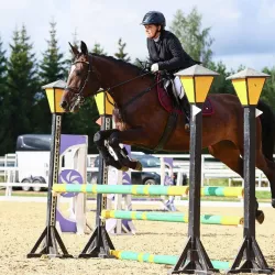 №1091 — Мерин, 2016 г. р., 160 в/х, гнедой масти. 🍁 Орловский рысак. Конкур до 70 см, дома маршруты 90 см, перспективен на высоты до 120 см. Имеет стартовый опыт 70 см (только начали стартовать). 🍁 Безопасная…