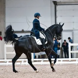 №379 — Мерин, 2013 г.р., 165 в/х, вороной масти ❄️ Менорсской породы, привезён из Испании ❄️ Смелый, любопытный. Удобный верхом можно пить кофе. ❄️ Отлично выезжен переходы, подъемы, боковые. Умеет…