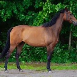 Очень изящная, высокая и красивая кобыла. Привезена в Россию в 2023 году и на сегодняшний день выступает в соревнованиях по конкуру с высотой до 140 см. Династия очень аккуратная и смелая лошадь с прекрасной…