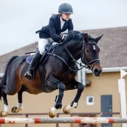 Очень изящная, высокая и красивая кобыла. Привезена в Россию в 2023 году и на сегодняшний день выступает в соревнованиях по конкуру с высотой до 140 см. Династия очень аккуратная и смелая лошадь с прекрасной…