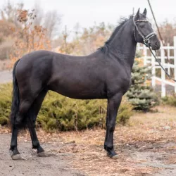 Очень изящная, высокая и красивая кобыла. Привезена в Россию в 2023 году и на сегодняшний день выступает в соревнованиях по конкуру с высотой до 140 см. Династия очень аккуратная и смелая лошадь с прекрасной…