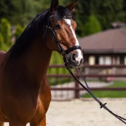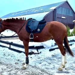 Очень изящная, высокая и красивая кобыла. Привезена в Россию в 2023 году и на сегодняшний день выступает в соревнованиях по конкуру с высотой до 140 см. Династия очень аккуратная и смелая лошадь с прекрасной…