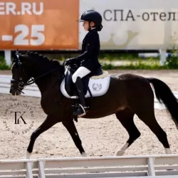 Очень изящная, высокая и красивая кобыла. Привезена в Россию в 2023 году и на сегодняшний день выступает в соревнованиях по конкуру с высотой до 140 см. Династия очень аккуратная и смелая лошадь с прекрасной…