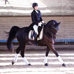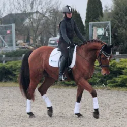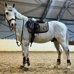 Очень изящная, высокая и красивая кобыла. Привезена в Россию в 2023 году и на сегодняшний день выступает в соревнованиях по конкуру с высотой до 140 см. Династия очень аккуратная и смелая лошадь с прекрасной…