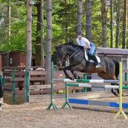 Прекрасный учитель для всадника любого уровня, на маршрутах "самопрыг", регулярно выступает на соревнованиях, маршруты 80 см, на тренировках 100 110 см. Не пугливый, к человеку лояльный (дети сами седлают)…