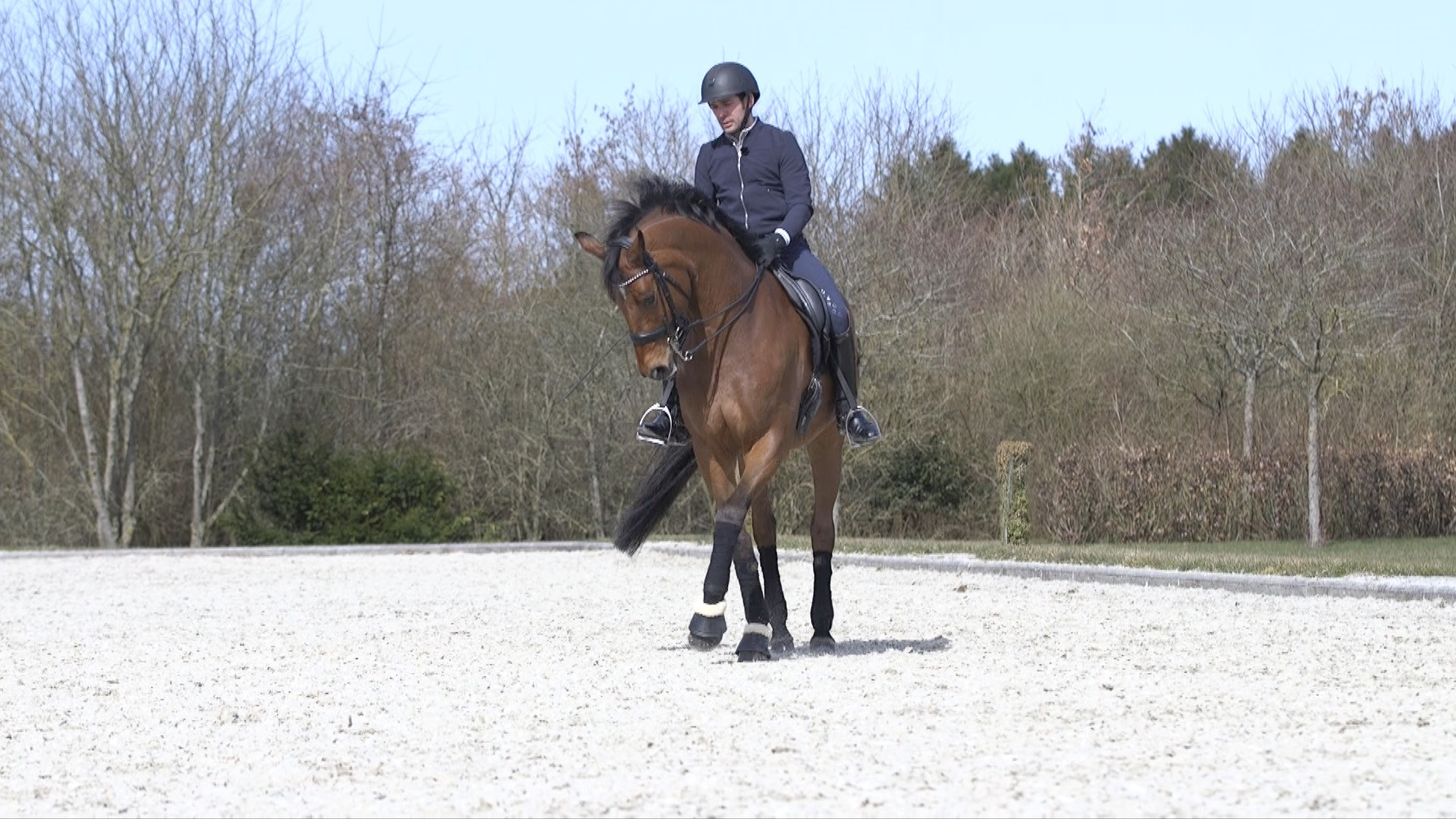 - Лошадь сгибается вокруг внутренней ноги всадника и остается в поводу с сохранением контакта.