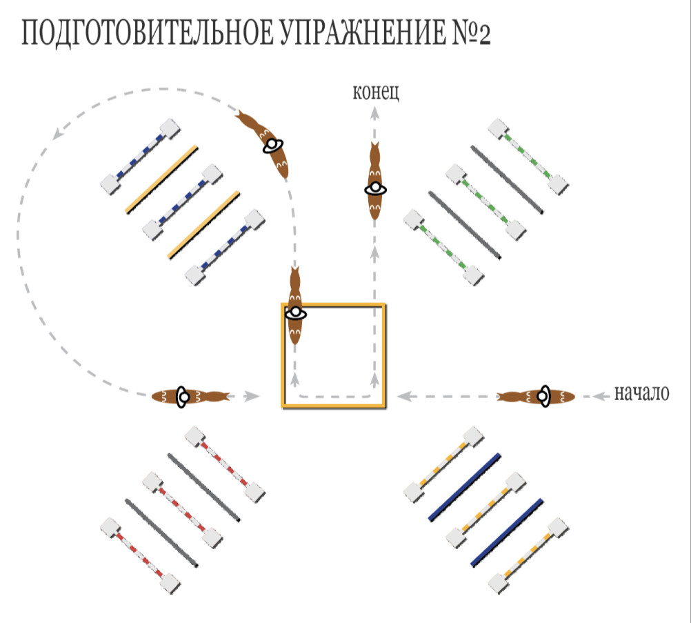 В второй части статьи мы расскажем о самих упражнениях с использованием выложенной системы кавалетти и квадрата. Задания смогут выполнить как опытные пары, так и начинающие, корректируя траектории и размеры элементов под свой уровень.