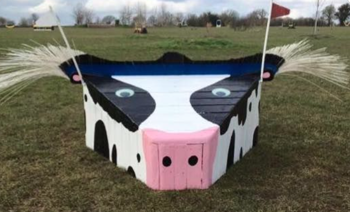Учебный центр по троеборью, который находится недалеко от Хангерфорда (Великобритания), создал, пожалуй, самое милое препятствие в мире. Очаровательная корова точно пощекочет нервы всем троеборным лошадям.