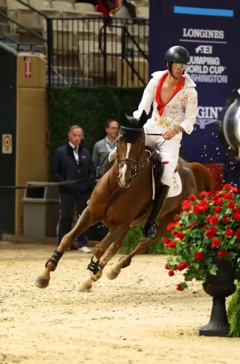 Нередко кино и мультфильмы становятся вдохновением для костюмированных выступлений. Именно так произошло и с бразильским конкуристом Родриго Пессоа, который повторил образ героя Тома Круза из фильма «Топ Ган: Мавэрик». Достаточно простой в исполнении и практичный, но не менее эффектный костюм. Самое главное, что прыгать удобно!