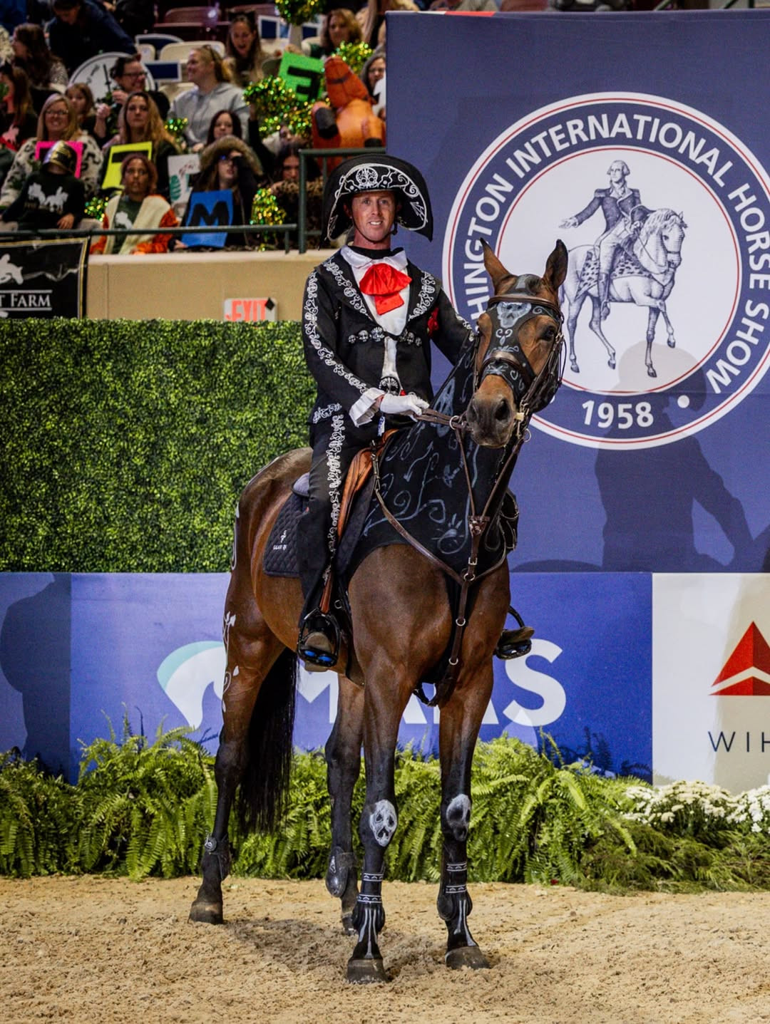 Один из самых оригинальных костюмов был у Бена Майера. Британский конкурист вдохновился мексиканским праздником, днем мертвых, и выбрал наряд в его стилистике. Этнические узоры, цветные вставки и шлем, имитирующий сомбреро. Всадник не обделил и своего боевого партнера, разукрасив элементы экипировки и части шерсти животного аналогичными символами.
