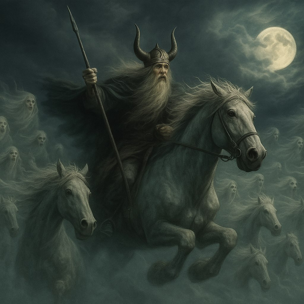 Во многих традициях лошади выступают посредниками между мирами. В европейском фольклоре особенно ярко это проявляется в легенде о Дикой Охоте. Призрачная кавалькада во главе с мифическим предводителем (Одином, Херлом или королем Артуром) проносится по ночному небу, оставляя за собой огненный след. Встреча с этим шествием сулила беду или призыв в загробный мир — оттого путники старались не привлекать к себе внимания, едва заслышав далекий топот копыт.