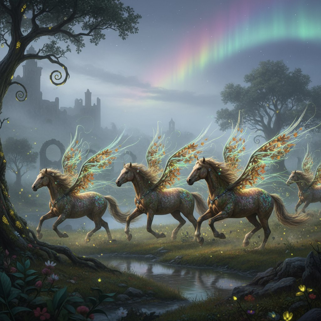 Ирландский фольклор сохранил рассказы о фейри‑конях — волшебных созданиях, принимающих облик прекрасных лошадей. Они заманивали путников, а те, кто садился на них, оказывались в стране фейри, откуда невозможно вернуться. В этих сказаниях звучит предостережение: не всякий прекрасный облик таит доброе намерение.