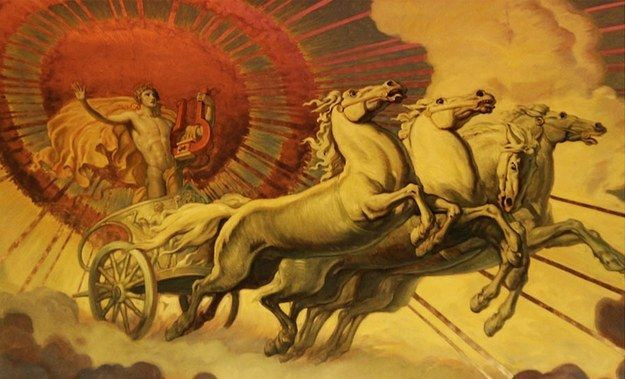 Лошади Гелиоса – это четыре огненных коня: Пирой, Эос, Этон и Флегон, везущие солнечную колесницу. Их грива сияла пламенем, а след на небосводе оставлял дорожку света, соединяющую день и ночь.