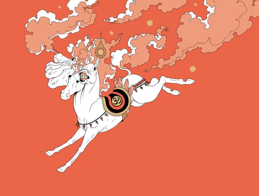 В Индийской (ведической) мифологии – это Уччайхшравас. Семиголовый белый конь, царь всех лошадей, ездовое животное бога Индры. Его многоглавость указывала на всеведение, а белоснежная шерсть — на чистоту и возвышенность.