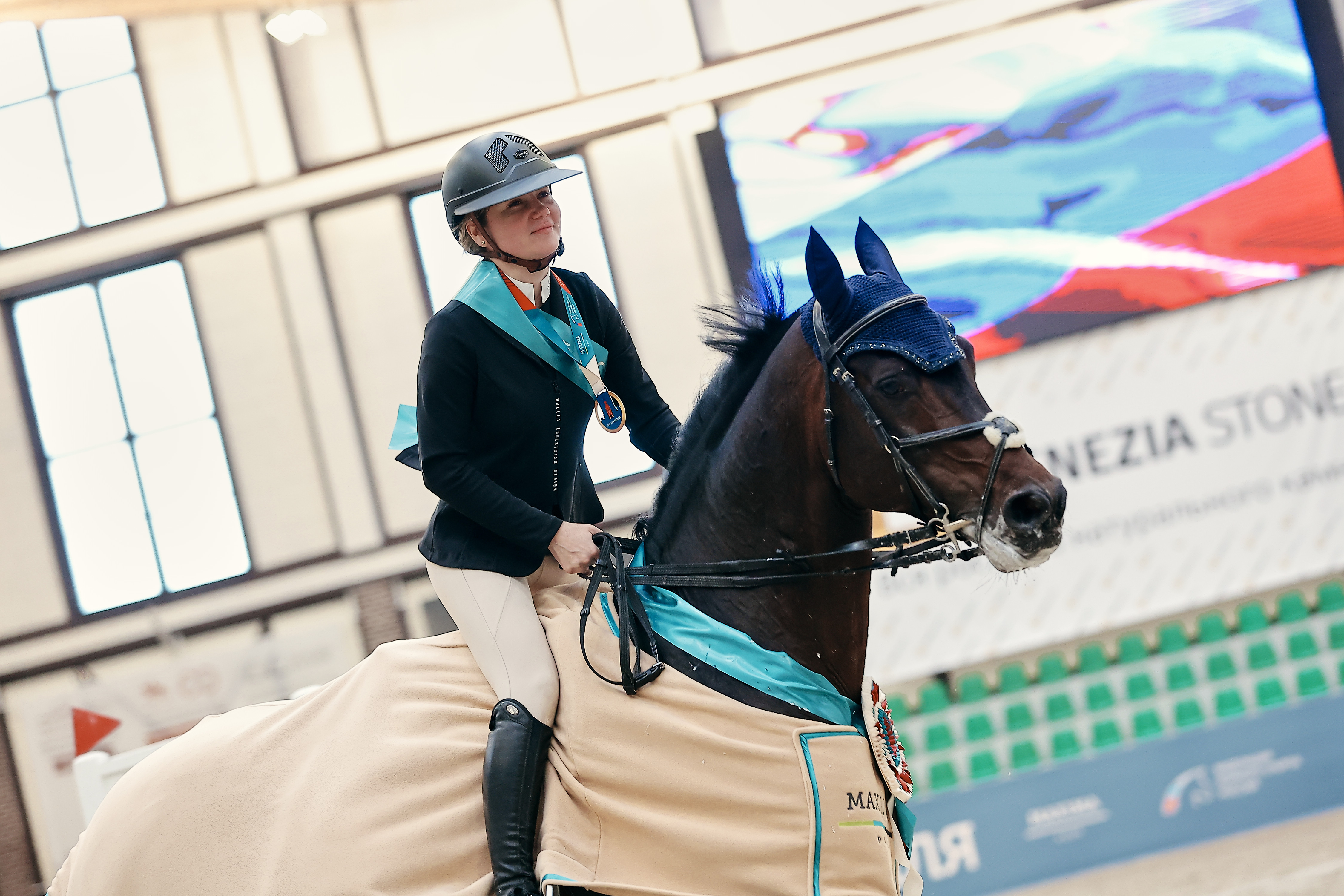 Через неделю или две мы поехали на достаточно крупный старт — чемпионат России для молодых лошадей семи лет. Мы все дни были в призах, а в финальный день остались вторыми.
