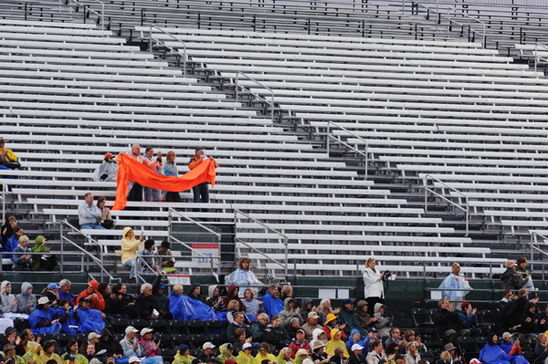 В виду проливного дождя пришлось убежать от кромки поля на трибуны для прессы, поэтому многие фотографии не так близко, как хотелось бы. Вообще, прогноз погоды неутешительный. В соседних штатах штормовое предупреждение и угроза торнадо. Тем не менее, никакие природные катаклизмы не помешали спортсменам с восьми утра быть на коне, во всех смыслах.