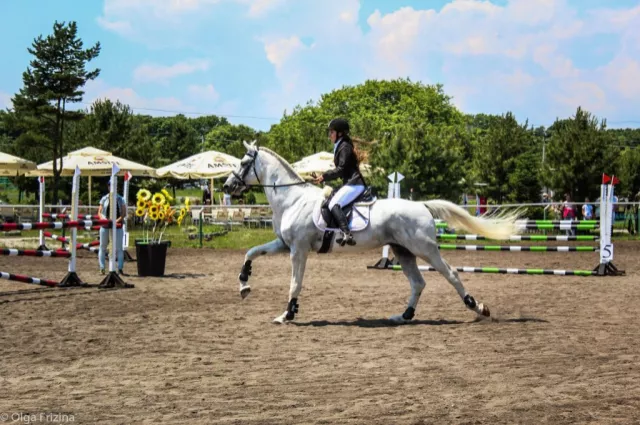 Работа в крытом манеже 20*60, возможность участия в соревнованиях.
