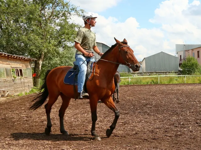 ними. Сейчас вполне уверенно езжу 3 аллюрами как в манеже, так и в полях. Иногда помогал на конюшне, могу привести лошадь, почистить, помыть, поседлать и т.п., есть