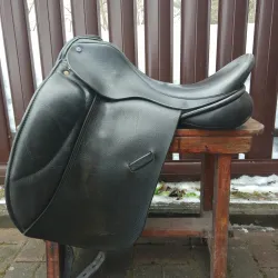 Выездковое седло пр ва Martin Wilkinson (Англия). 17.5" На среднеширокую лошадь с любой холкой. Вырез под высокие холки. Широкий канал. Большие укороченные упоры. Состояние хорошее, сел и поехал: швы…