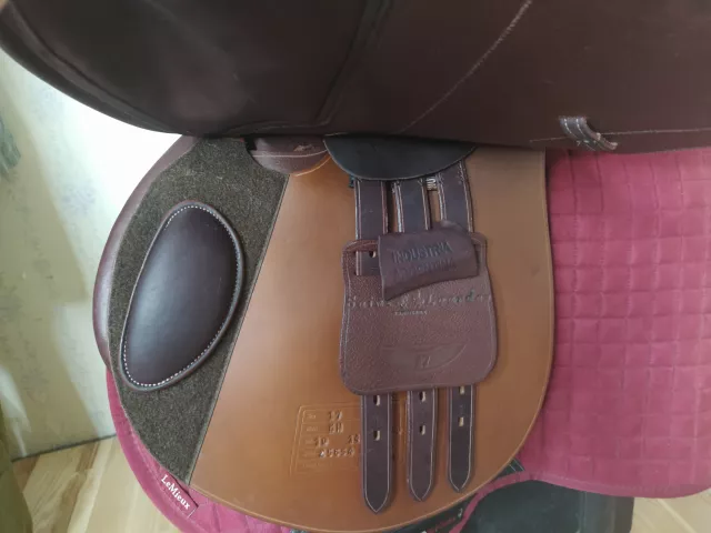 Продаю конкурное седло STYLO SAINT LOURDES(Аргентина). Новое седло, не использовалось, только примерялось, так что состояние как из магазина.Сделано оно из качественной натуральной мягкой кожи, имеет удобное плоское сиденье и сменные коленные упоры. Ленчик сделан из специально обработанной древесины, предотвращающей поглощение влаги.Всё седло красиво декорировано контрастной прострочкой.Седло на низкую холку, 17/MW(средне-широкая спина). Канал в хвосте 4 пальца, к холке расширяется и становится больше ладони.Продаю за 100 000р, в магазине оно стоит 170 000р. Возможна примерка под полный залог, без примерки отдам за 90т. Всё дополнительные фото могу прислать. Если не отвечаю на звонок, то можете писать мне в WhatsApp