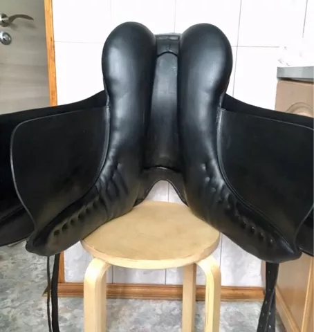 Рассмотрю обмен на выездковое седло на экстро-широкую лошадь в холке, плечах и спине, с U-образным ленчиком, с каналом от 4 пальцев, размер по всаднику 17-17,5-18