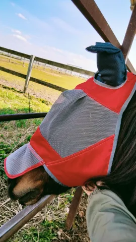 Прочная сетка, защищает от мошек и слепней. Есть петля для крепления к недоуздку. Размеры L,M,S. Возможен пошив по индивидуальным меркам.