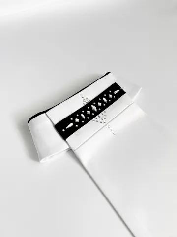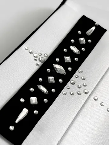Манишка чёрно-белая, выполнена из плотного атласа, украшена стразами.