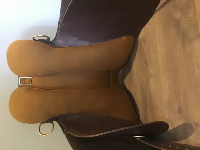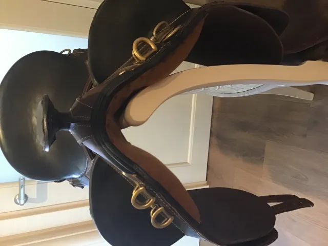 Отличное барочное австралийское седло. Идеально для постушьих работ или фотосессий. С рожком. Похоже на седло в стиле вестерн. В комплект идет вальтрап трилистник в синем цвете с мехом, подпругой и стременами. Использовалось пару раз, в шикарном состоянии, только есть небольшие потертости в зоне трения с путлищами. Все размеры на фото. По всаднику по классической таблице около 17,5, по вестерн таблице 16.