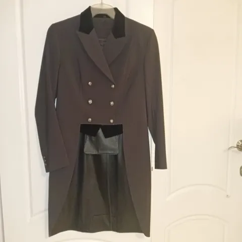 Продам фрак Аванти женский. Цвет серый, размер 46. Ткань легко читается, черный бархатный воротник и фурнитура.