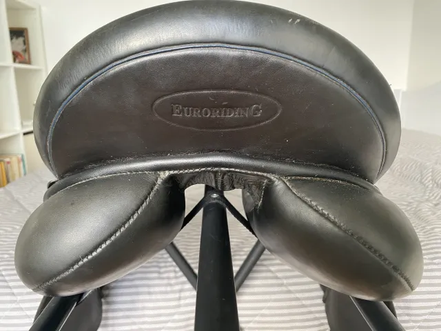 Седло Euroriding Titan 2, размер 17. Удобное, с большими упорами, подходит на высокую и среднюю холку, хороший уход и хранение. По Питеру могу привезти на примерку, при покупке c примеркой + 10 000 руб. к стоимости. Доставка за счет покупателя любыми службами доставки в любой регион. Продается с чехлом MIU.