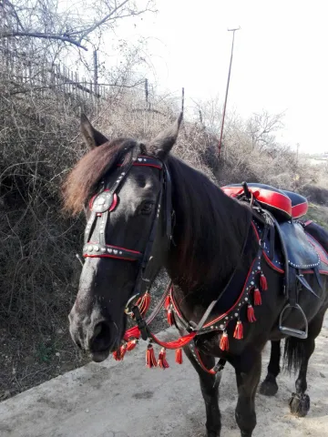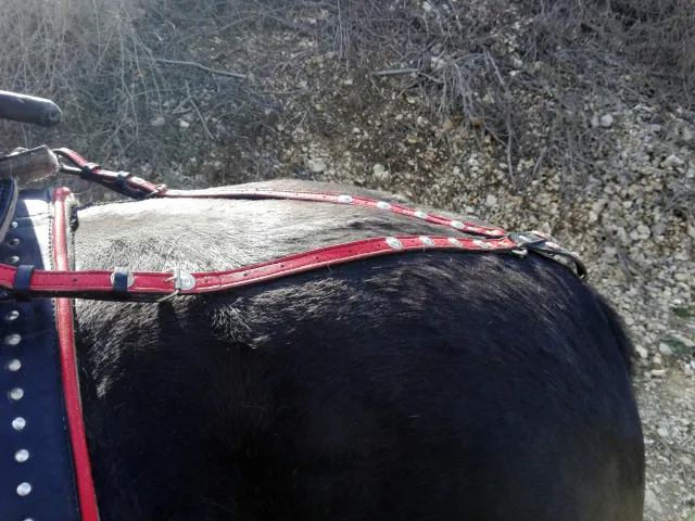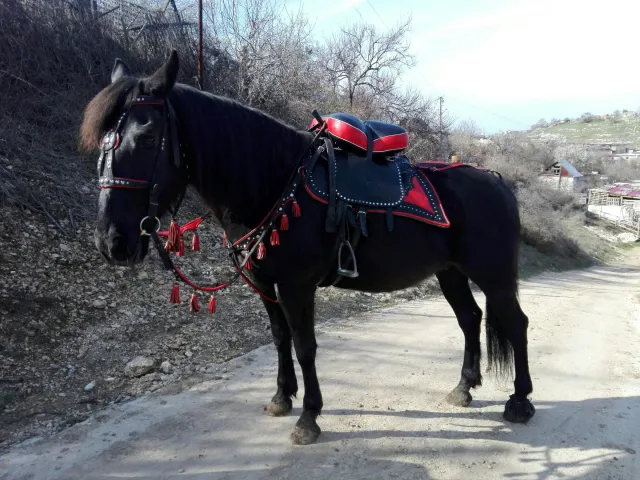 Продается яркий нарядный комплект из натуральной кожи - уздечка, повод, войлочный потник, джигитовочное седло, подхвостник. Производство Харьковской фирмы "Седло". Использовался крайне редко, состояние практически нового. Возможна раскомплектовка - уздечка+повод+нагрудник+подхвостник и седло+потник, по 15000 рублей за каждый набор.