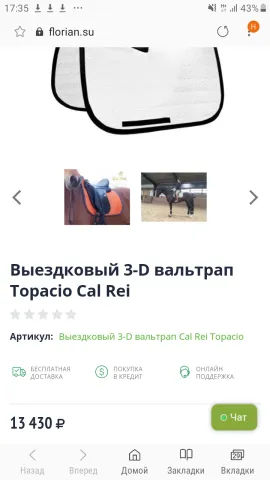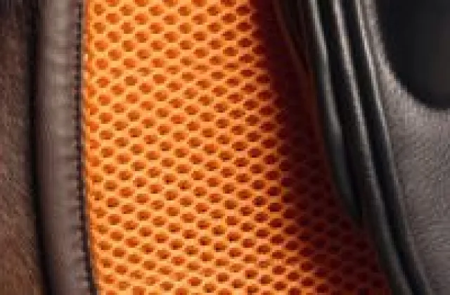 Вальтрап изготовлен из двух слоев ткани 3D, идеально соединенных между собой без применения каких-либо клеев. Эти два слоя придают вальтрапу ощущение большей пористости и прекрасное прилегание.Слои имеют открытую и 100% воздухопроницаемую структуру и призваны обеспечить лошади максимальный комфорт и уменьшить нагрузку, которой она подвергается во время занятий. Нижний слой вальтрапа более мягкий, с более мелкими порами, чтобы в него не проникали волоски, а верхний слой более плотный и прочный для придания вальтрапу формы, с более крупными порами для повышенной вентиляции и воздухопроницаемости.Вальтрап Топаз разработан для выездки, поэтому его размеры стандартны для этой дисциплины, при этом он легко принимает нужную форму без малейшего ущерба для эргономичности и дышащих свойств.Он отделан искусственной кожей, что упрощает уход за ним, так как он не боится воды, легко моется с мылом, кроме того, он не протирается и всегда имеет превосходный вид.Производитель: Cal Rei, ИталияВыездковый 3-D вальтрап Cal Rei Topacio