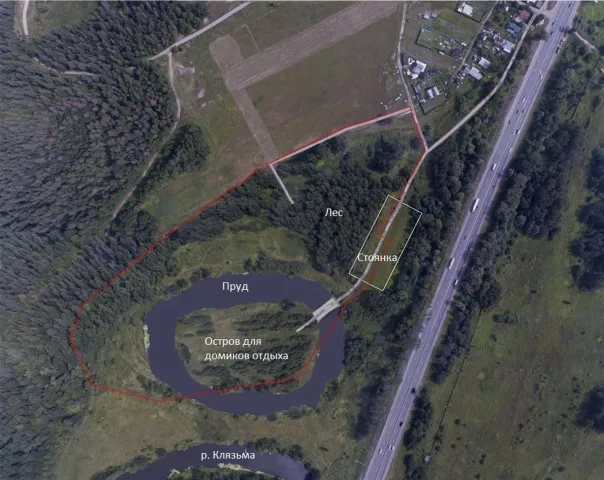 баней, веревочным парком и рестораном, на пересечении р. Клязьмы и Горьковского