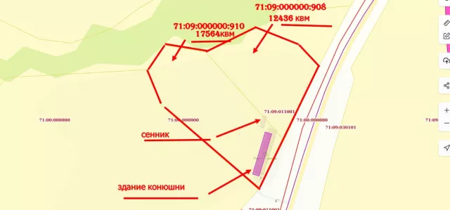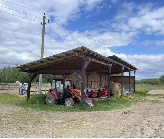 На участке конюшня 505.6 кв. м. и все необходимые вспомогательные постройки (сенник, навес для трактора, опилочник, открытый конный манеж, левады) и трактор МТЗ 320.4 (кун, роторная косилка, вилы, борона)