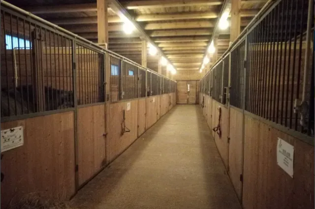Три отсека по 12 денников - 36 денников, в денниках полы деревянные, в