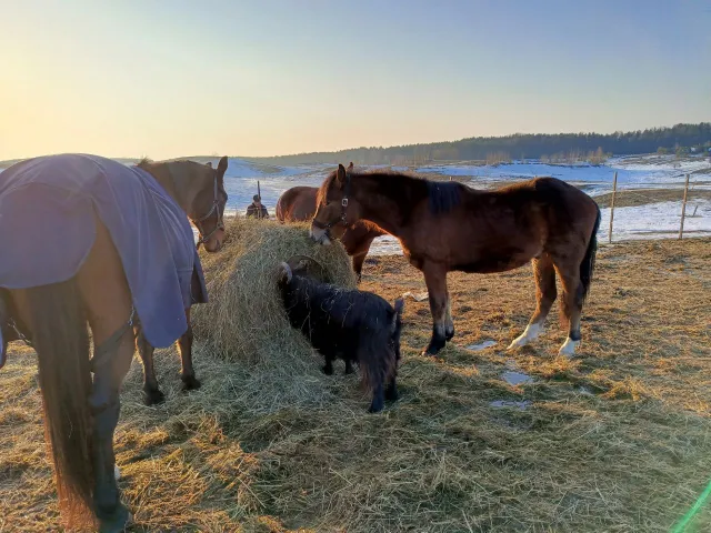 Небольшая конюшня на 8 денников, денники 3*4, открытый плац, небольшой крытый манеж, выгул целый день, электропастух, видеонаблюдение, живописные места недалеко от СПб, район Янино.