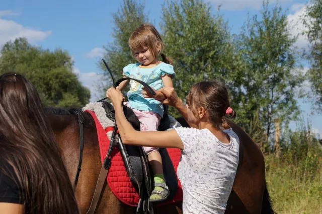 Живописные места ,леса и поля плюс река ока в 500 метрах от конюшни...