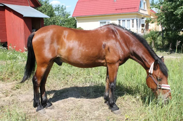 Порода белорусская упряжная, 10 лет, 145 в холке. Парень крепкий, костистый, широкий. Взрослый человек на нем ущербно не смотрится)) А т.к. широкий - есть что обхватить ногами))) По характеру этакий деревенский мужичок) Где-то ленится, где-то "дурачка" включает, где-то мыслителя из себя воображает)) НО, этому коню можно доверять. Никогда не разносил, не козлил, не свечил. Воспитан так, что на человека даже посмотреть косо не подумает. Управляется как шенкелем, так и голосом. Аллюры очень мягкие и удобные. С другими лошадьми не конфликтен, но и себя в обиду не даст. По здоровью проблем нет. Привезен из Белоруссии.