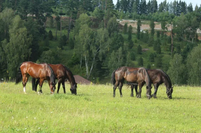 Денники 3x3, 3х4 оборудованы автопоилками, на полу EVA маты, 3-х разовое питание, сено без ограничений (свои заготовки). Закрытая мойка (только в теплое время года).