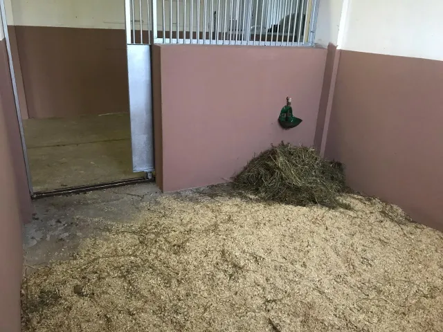- кормление лошади по индивидуально подобранному плану питания (до 18 кг сена, овес индивидуально);